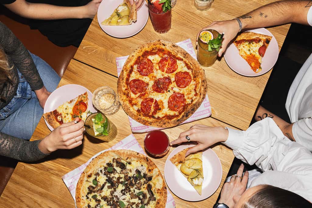 Når vi siger ‘Frankies’, så vil vi gerne have, at du tænker på neonlys, pizza, godt humør og ‘more than pizza’. For når du holder et event hos Frankies, ER det mere end pizza.